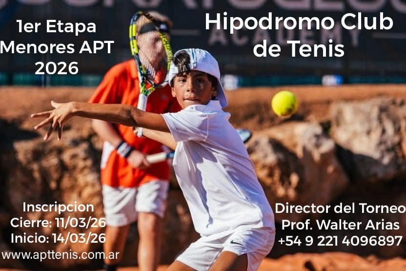 Se encuentra abierta la inscripción para la 1ra Etapa de Menores APT 2026 que se desarrollará en el Hipódromo Club de Tenis de la ciudad de La Plata.